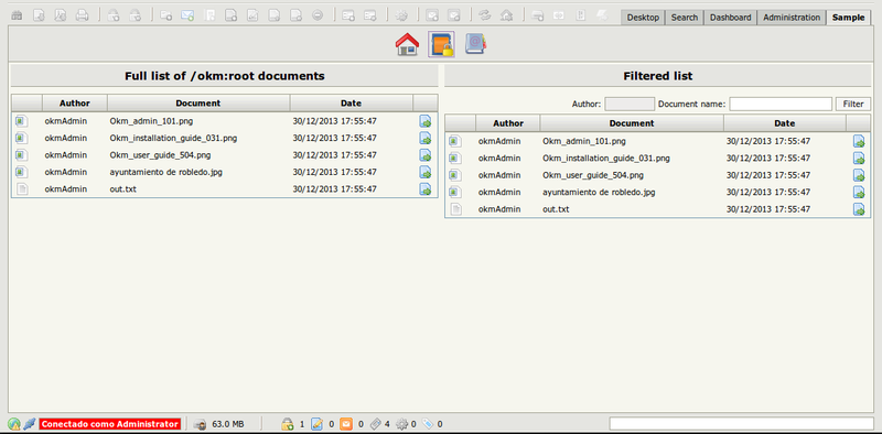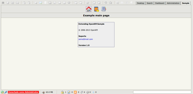 This sample shows how to quickly extend OpenKM features with JSP, HTML, CSS and JavaScript technologies using OpenKM Java API and how to use JavaScript functions of the exposed frontend Java methods.
