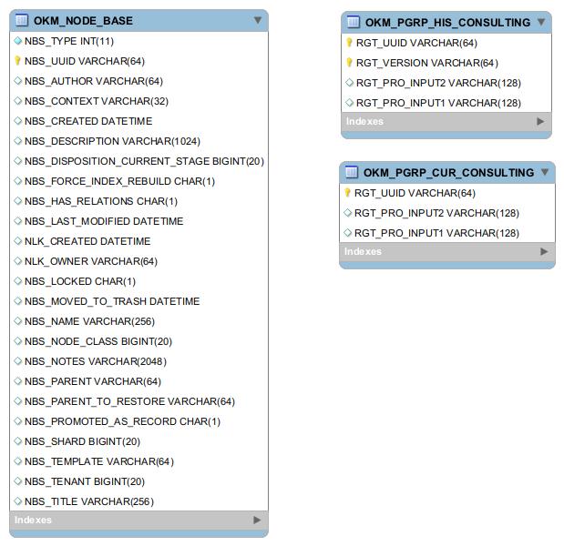 - OKM_PGRP_HIS_CONSULTING (used for the history of the metadata values)