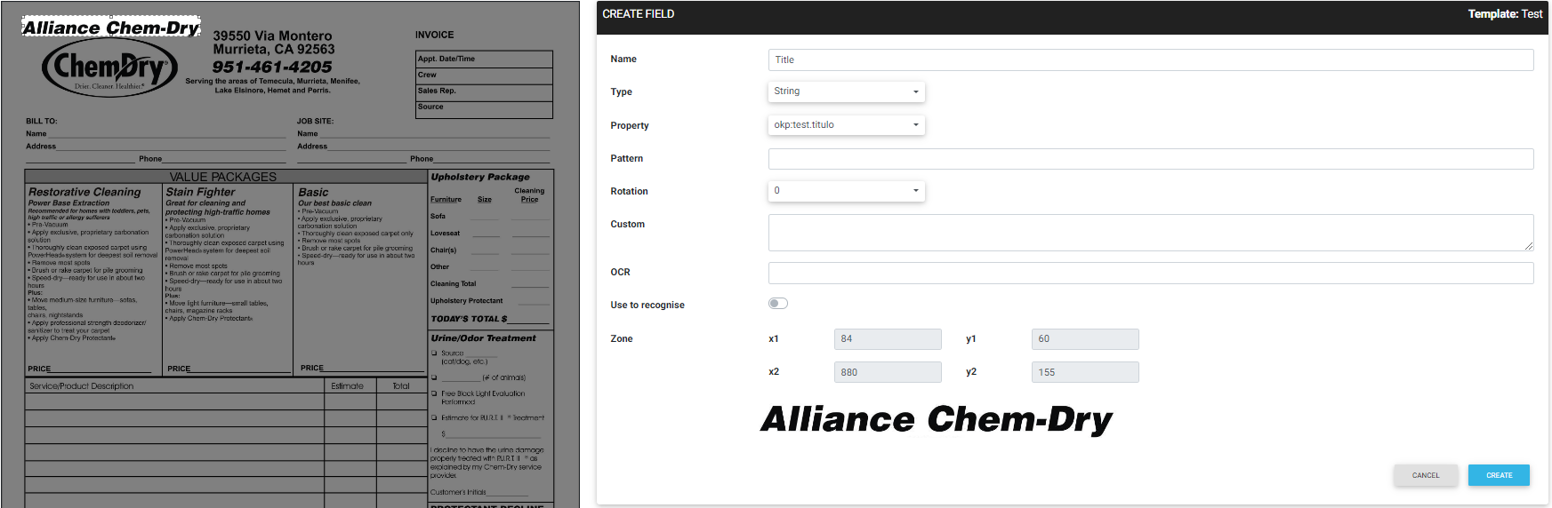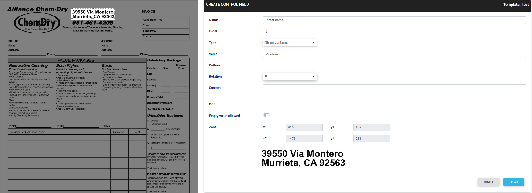 On recognition, the application based on the OCR template's definition tries to identify the document. A document will be considered recognised only if an OCR template matches 100%.