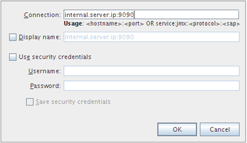 Now you can connect VisualVM to the remote target. Go to File > Add JMX Connection... and type the IP or hostname of the remote machine and the configured JMX port (in our sample configuration, 9090).